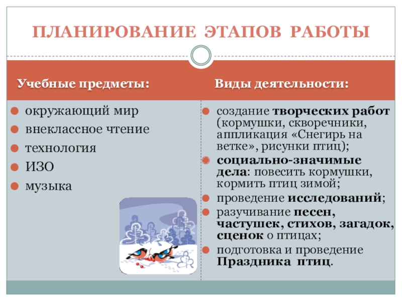 Планирование этапов работы