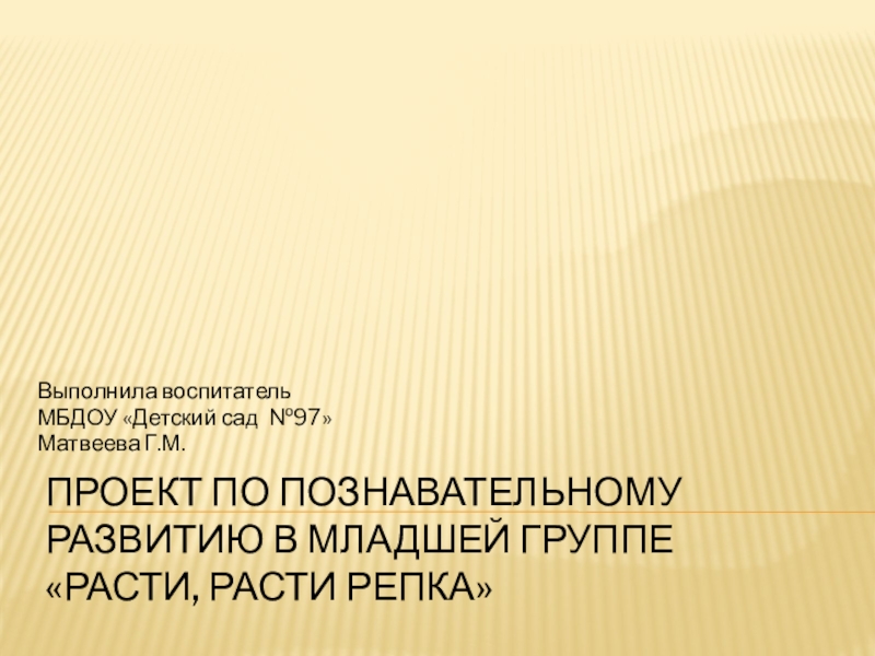 Проект по познавательному развитию в младшей группе «Расти, расти репка»Выполнила воспитатель МБДОУ «Детский сад №97»Матвеева Г.М.
