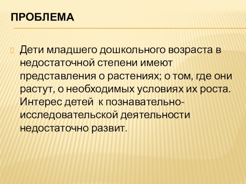 Дети младшего дошкольного возраста в недостаточной степени имеют представления о растениях;