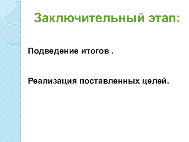 Заключительный этап:Подведение итогов .Реализация поставленных целей.