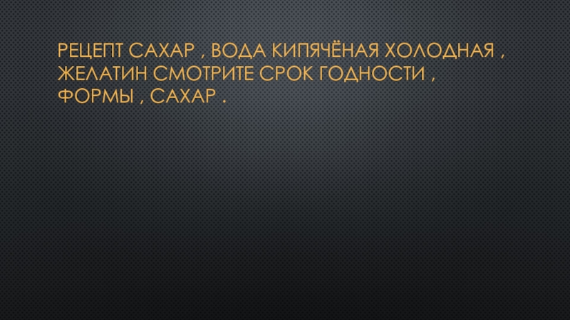 Слайд 2Рецепт Сахар , вода кипячёная холодная , желатин смотрите срок годности