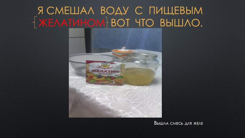 Слайд 4Я смешал воду с пищевым желатином вот что вышло.