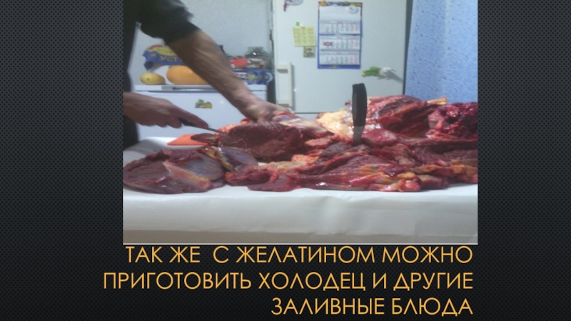 Слайд 8Так же с желатином можно приготовить холодец и другие заливные блюда