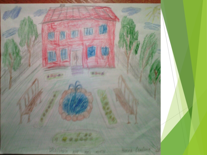 В работе нашли отражение разработки детьми школьного двора, спортивного зала, столовой, и других помещений. Главное внимание обращается на уникальность каждой работы, заинтересованность учеников в проекте.