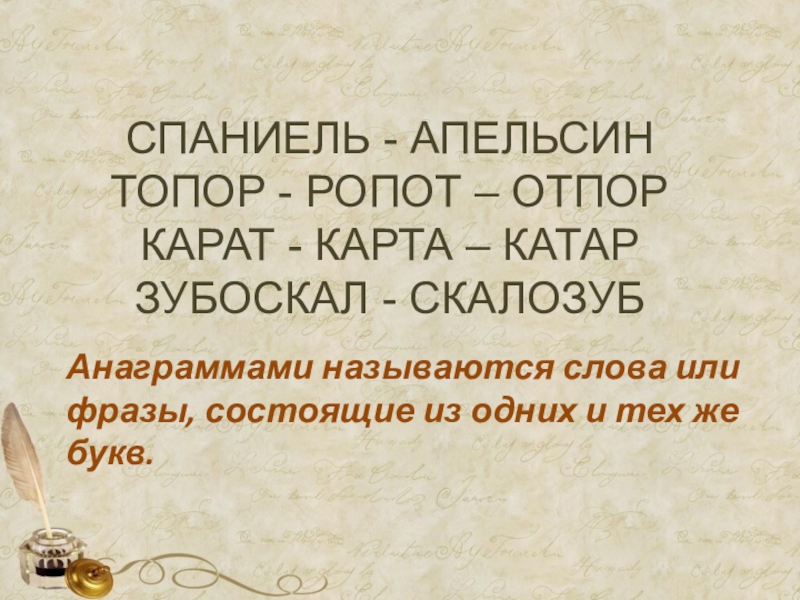 Анаграммами называются слова или фразы, состоящие из одних и тех же букв.