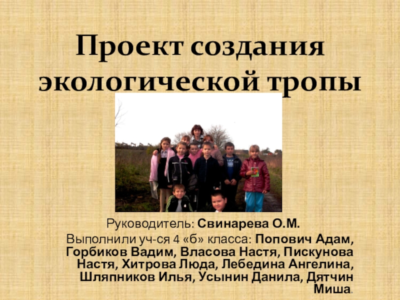 Адам, Горбиков Вадим, Власова Настя, Пискунова Настя, Хитрова Люда, Лебедина Ангелина, Шляпников Илья, Усынин Данила, Дятчин Миша.