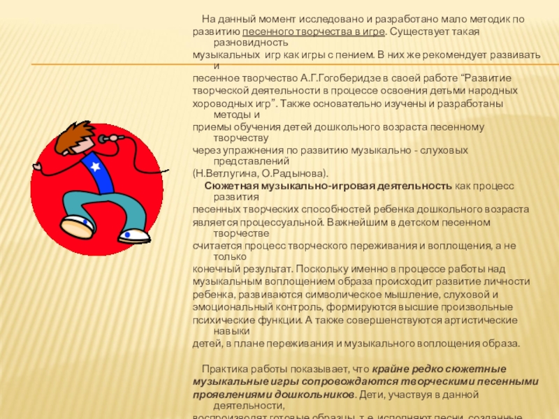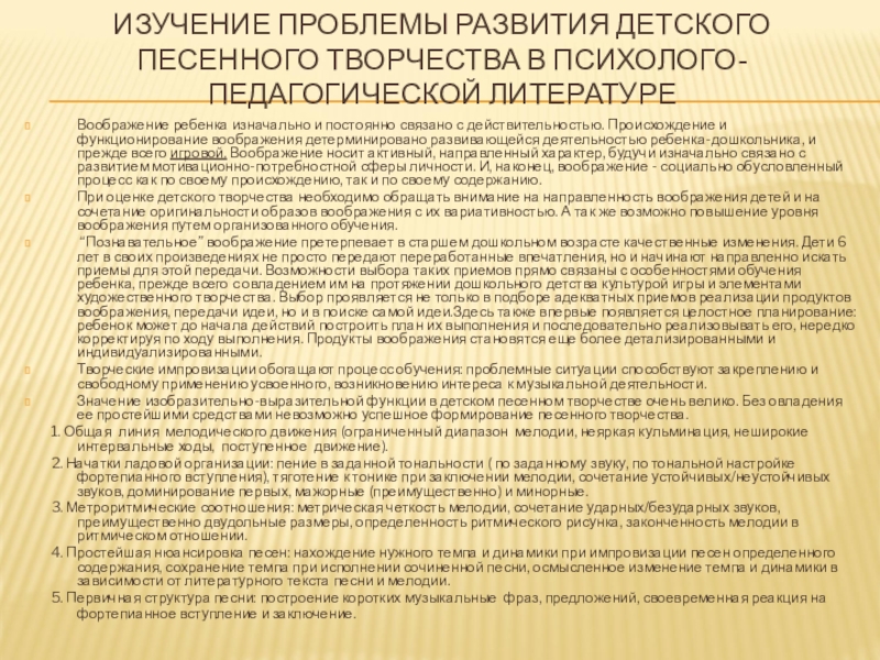 Слайд 7ИЗУЧЕНИЕ ПРОБЛЕМЫ РАЗВИТИЯ ДЕТСКОГО ПЕСЕННОГО ТВОРЧЕСТВА В ПСИХОЛОГО-ПЕДАГОГИЧЕСКОЙ ЛИТЕРАТУРЕ