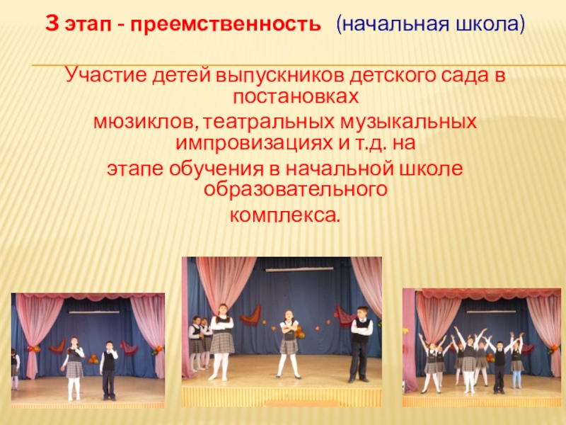 - Участие детей в постановке мюзиклов, театральных музыкальных импровизациях и т.д.