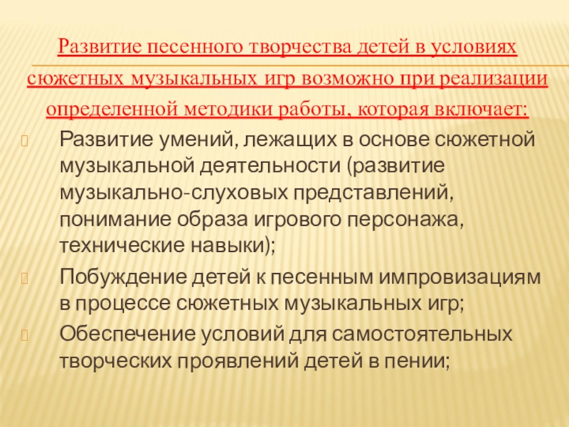 Побуждение детей к песенным импровизациям в процессе сюжетных музыкальных игр;