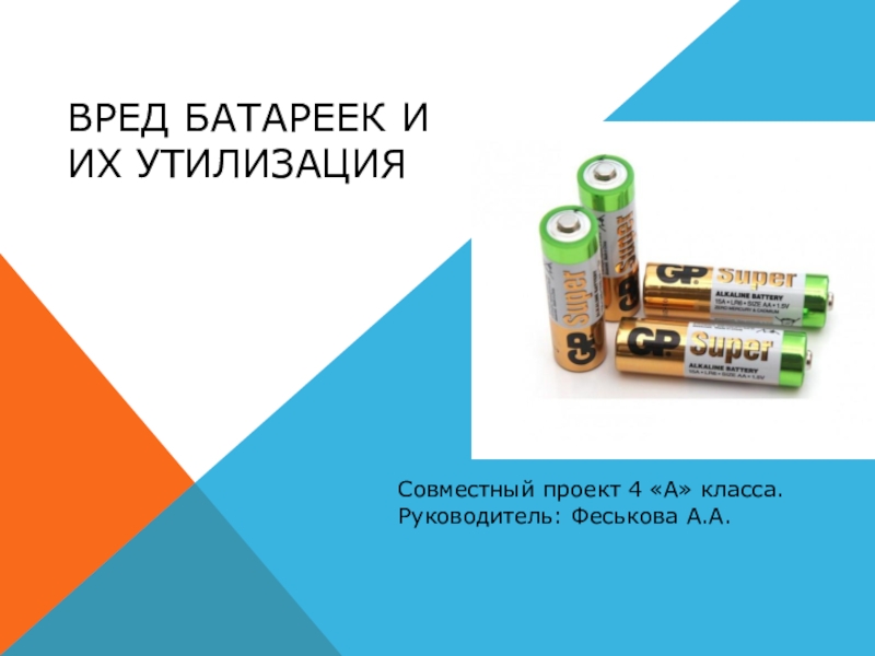 Вред батареек и их утилизацияСовместный проект 4 «А» класса.Руководитель: Феськова А.А.