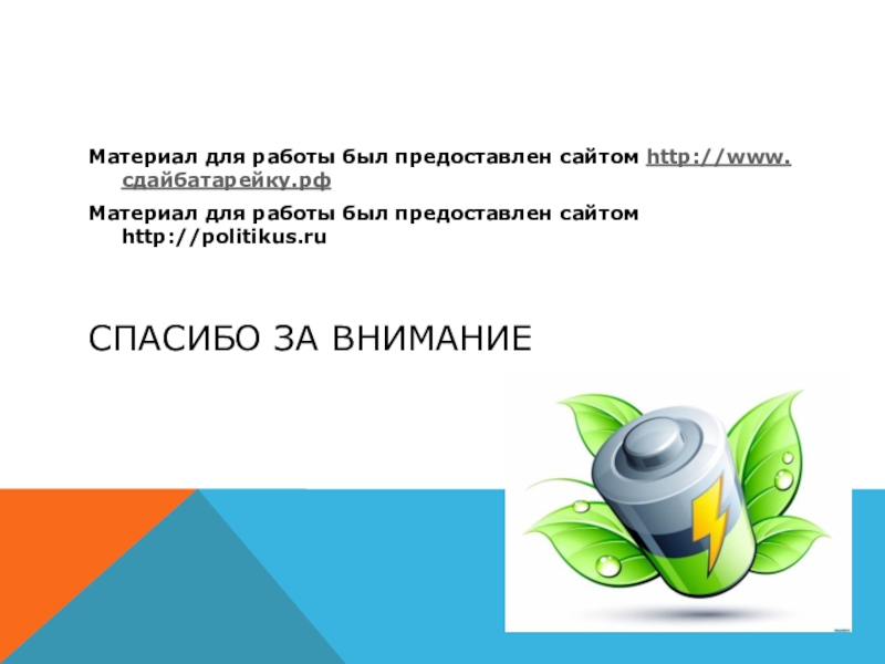 Спасибо за вниманиеМатериал для работы был предоставлен сайтом http://www.сдайбатарейку.рфМатериал для работы был предоставлен сайтом http://politikus.ru