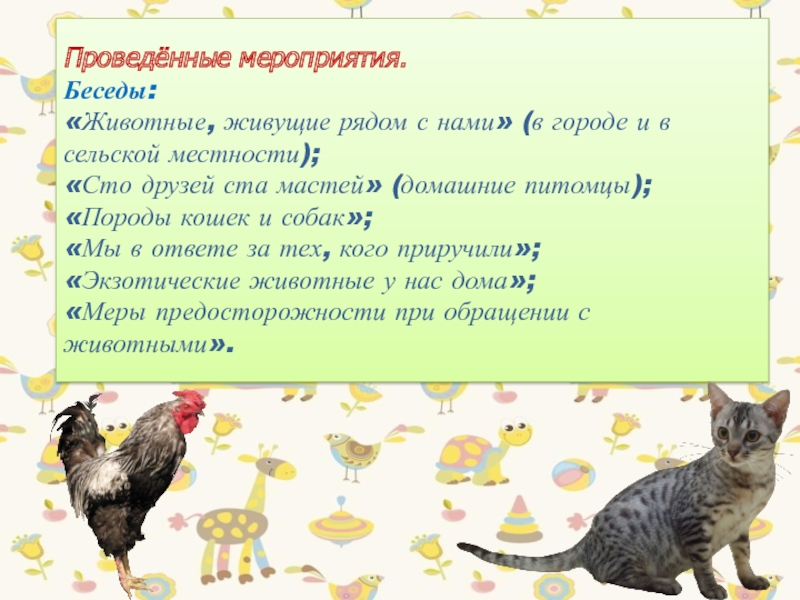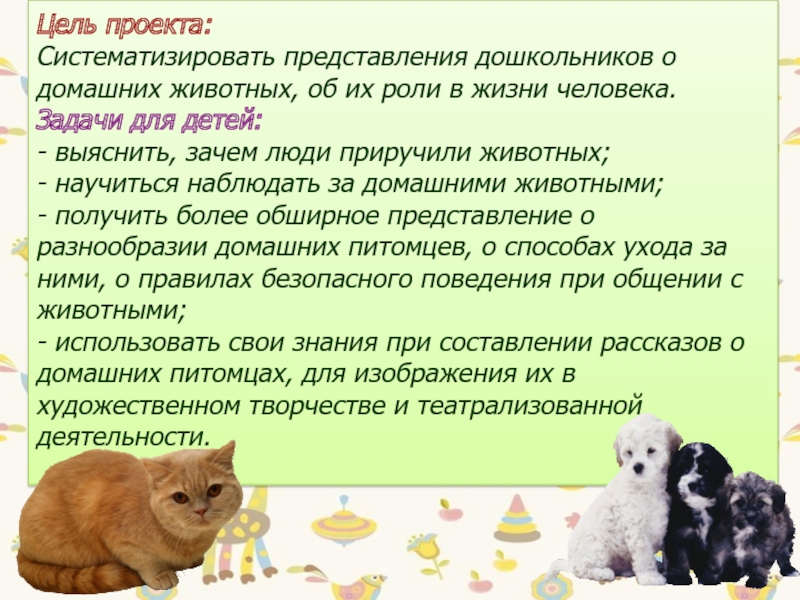 Систематизировать представления дошкольников о домашних животных, об их роли в