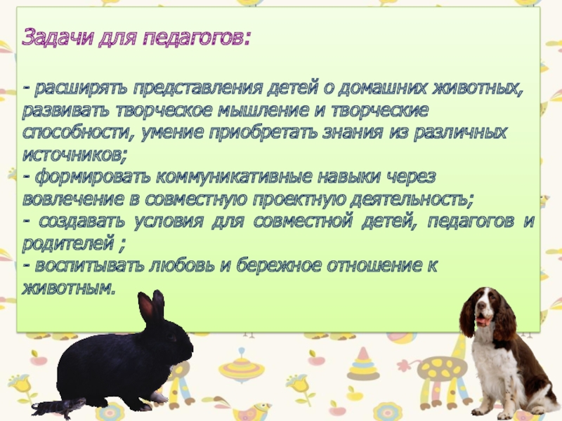 - систематизация знаний дошкольников по теме «Домашние животные»;