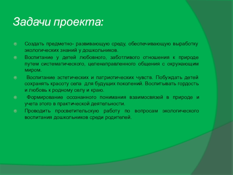 Проводить просветительскую работу по вопросам экологического воспитания дошкольников среди родителей.
