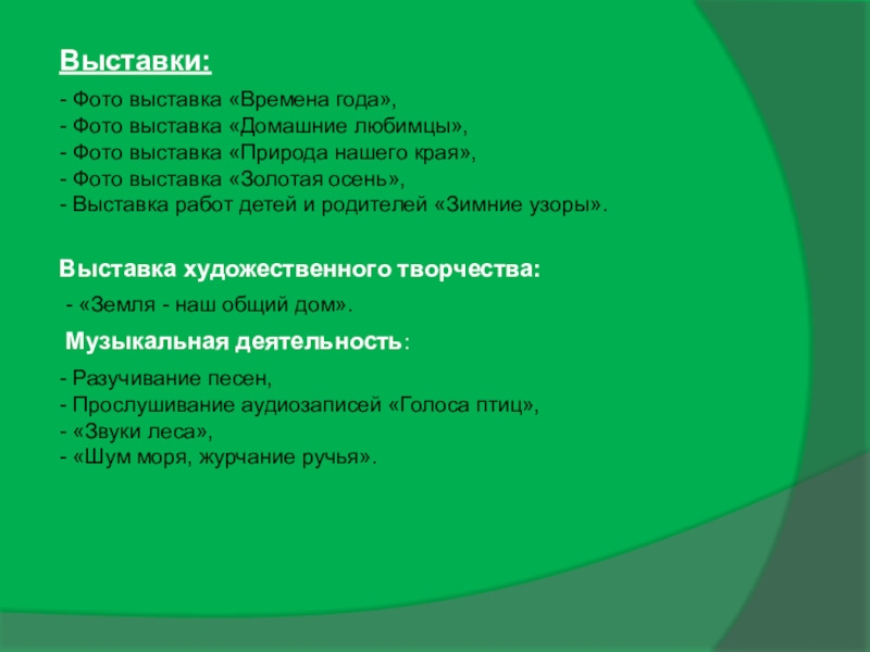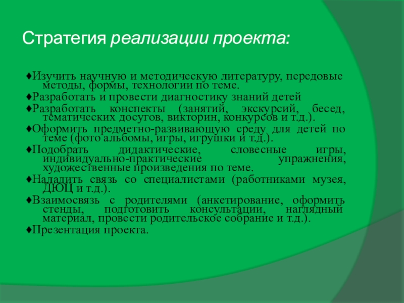 ♦Разработать конспекты (занятий, экскурсий, бесед, тематических досугов, викторин, конкурсов и т.д.).