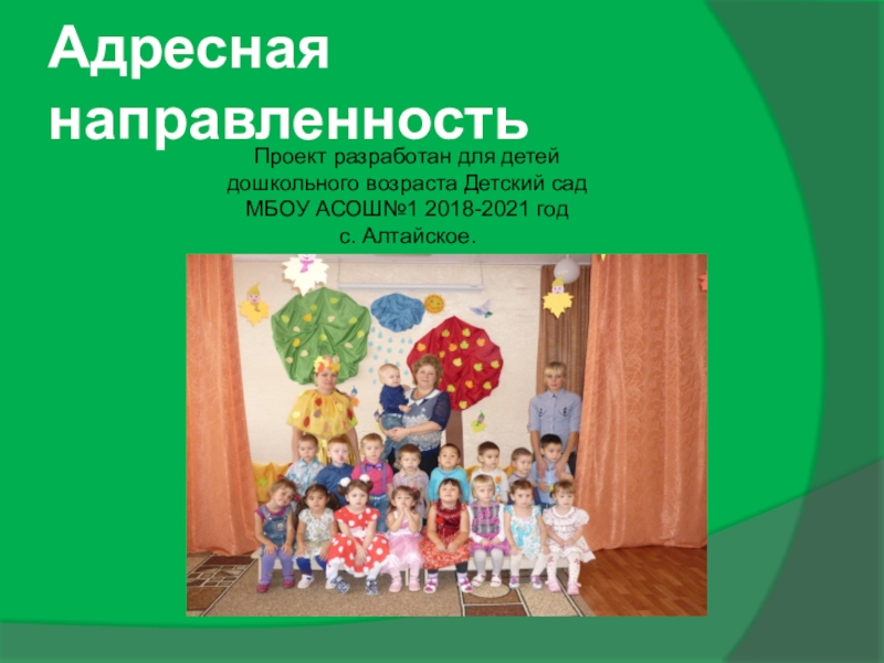 Проект разработан для детей дошкольного возраста Детский сад МБОУ АСОШ№1