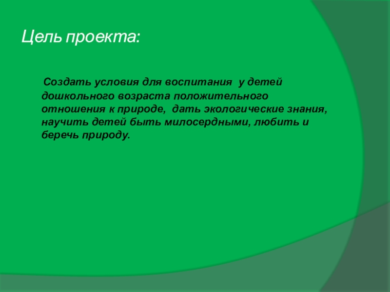 положительного отношения к природе, дать экологические знания, научить детей быть милосердными, любить и беречь природу.