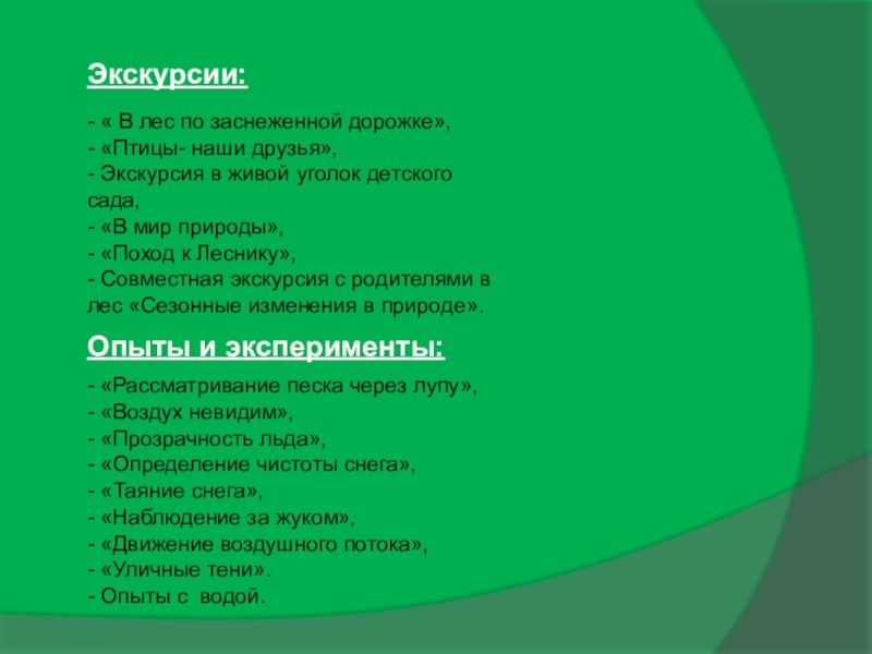 - Совместная экскурсия с родителями в лес «Сезонные изменения в природе».