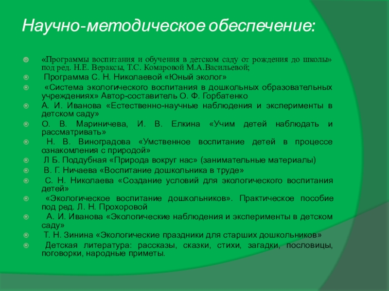 «Система экологического воспитания в дошкольных образовательных учреждениях» Автор-составитель О. Ф. Горбатенко