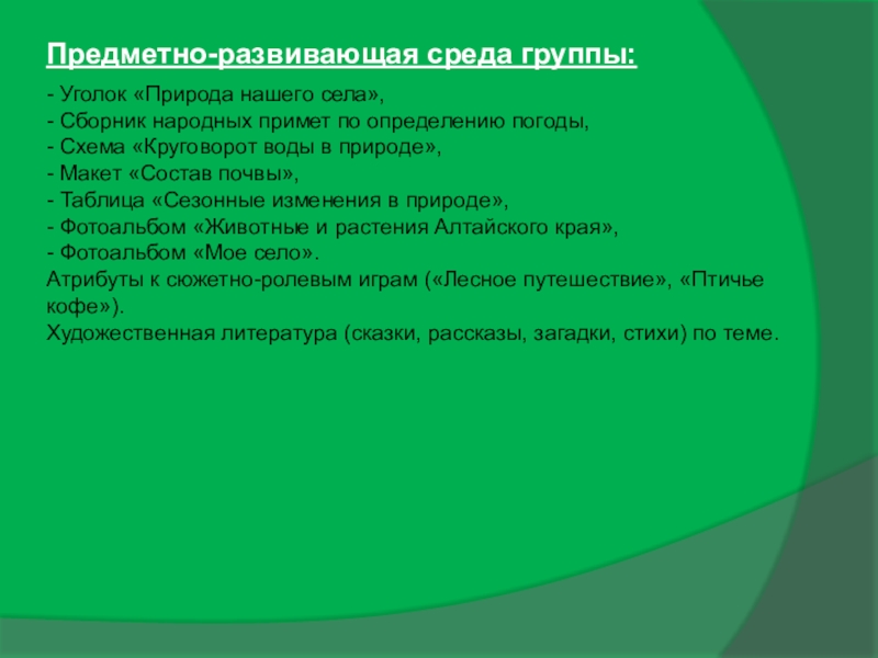 Слайд 18Предметно-развивающая среда группы: