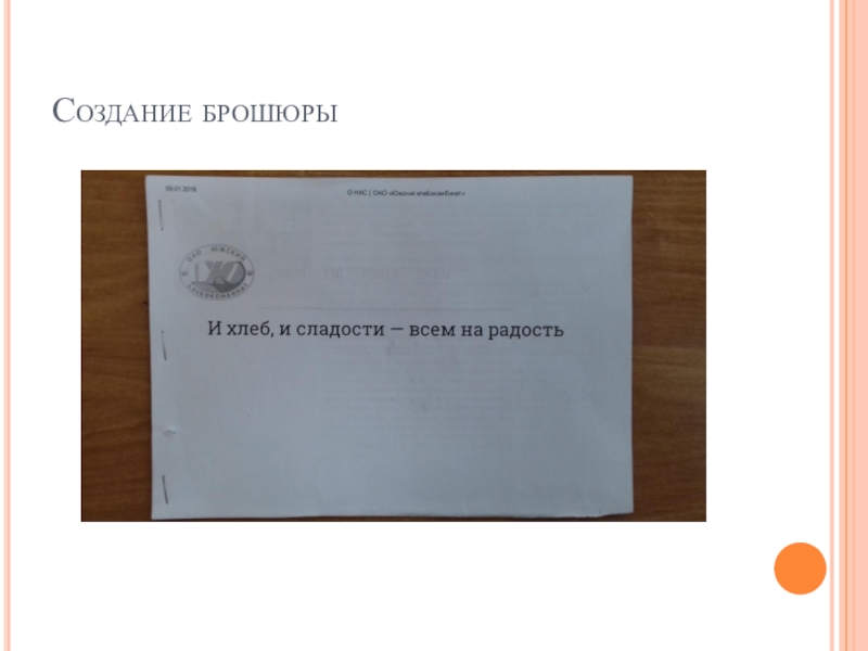Создать брошюру «И хлеб, и сладости – всем на радость!»