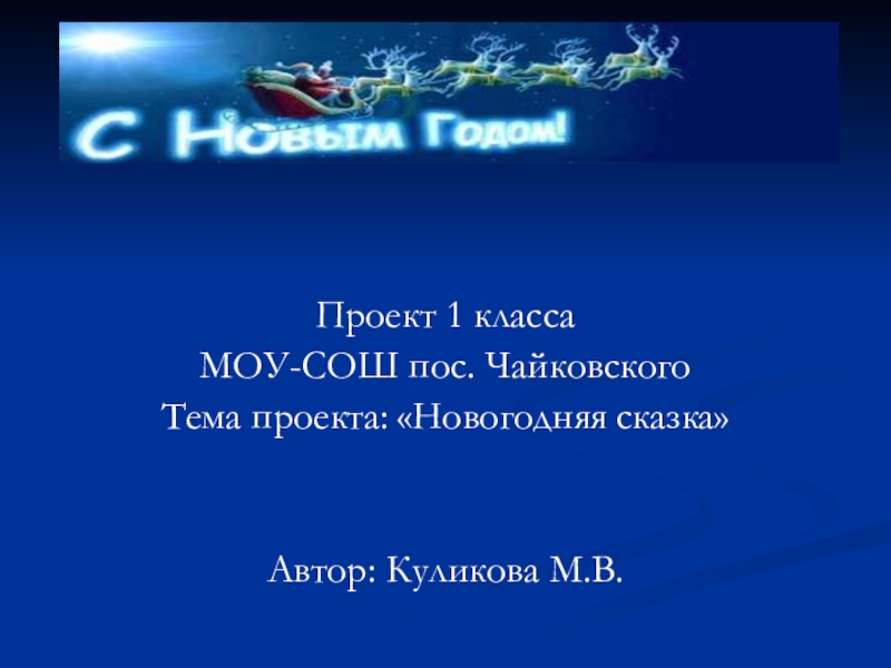 Проект 1 классаМОУ-СОШ пос. ЧайковскогоТема проекта: «Новогодняя сказка»Автор: Куликова М.В.