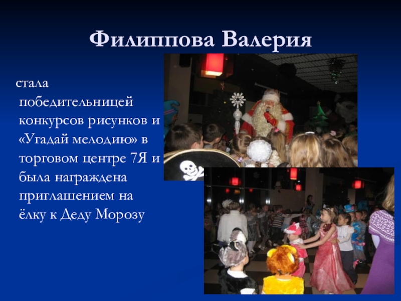 Филиппова Валерия  стала победительницей конкурсов рисунков и «Угадай мелодию» в торговом центре 7Я и была награждена