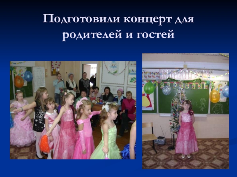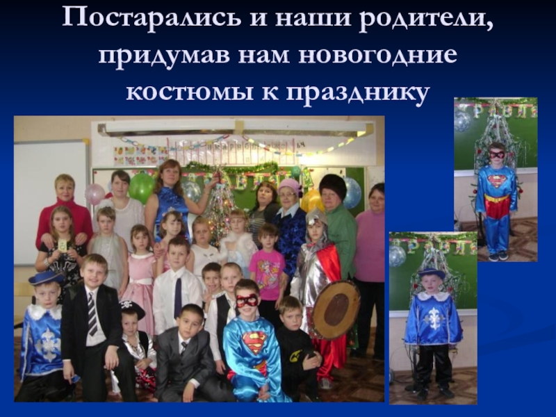 Слайд 13Постарались и наши родители, придумав нам новогодние костюмы к празднику