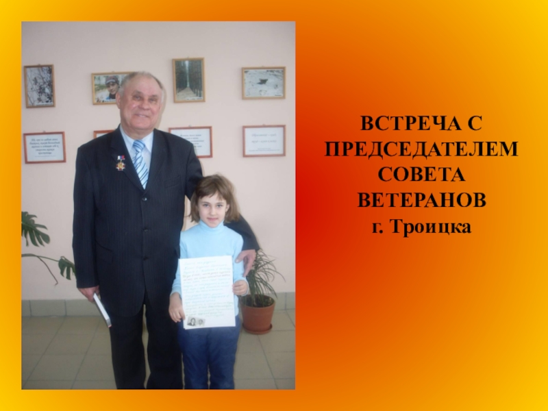 Слайд 17ВСТРЕЧА С ПРЕДСЕДАТЕЛЕМ СОВЕТА ВЕТЕРАНОВ г. Троицка