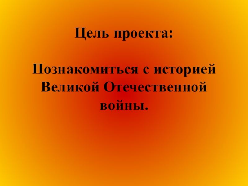 Слайд 3 Цель проекта: Познакомиться с историей Великой Отечественной войны.