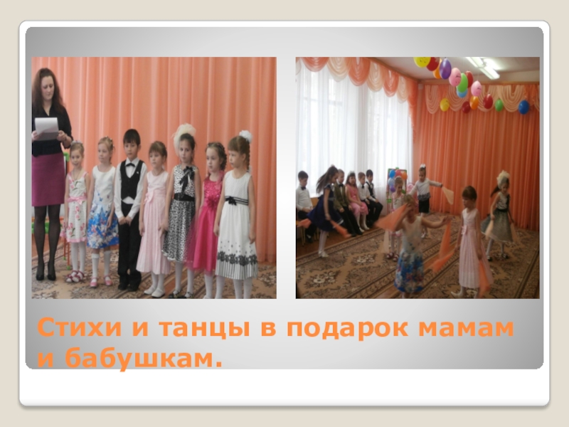 Слайд 21Стихи и танцы в подарок мамам и бабушкам.