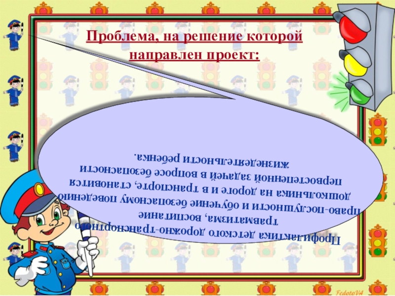 Актуальность проекта: ежегодно на дорогах нашей страны совершается миллионы дорожно-транспортных происшествий, в результате которых тысячи детей погибают, десятки тысяч получают ранения и травмы. Часто виновниками дорожно-транспортных происшествий являются сами дети, которые играют рядом вблизи дорог, переходят дорогу в неположенном месте, неправильно входят в транспортное средство и выходят из него. Высокий уровень ДТП в России обусловлен во многом недостаточной организацией профилактики ДТП. Сами родители осознано нарушают Правила дорожного движения при детях.