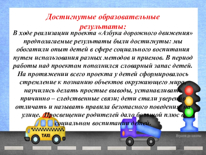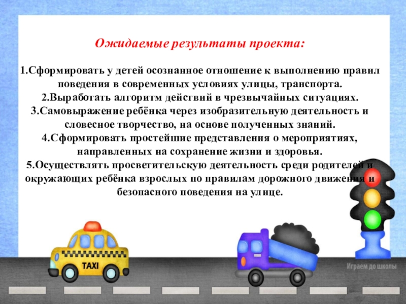 В ходе реализации проекта «Азбука дорожного движения» предполагаемые результаты