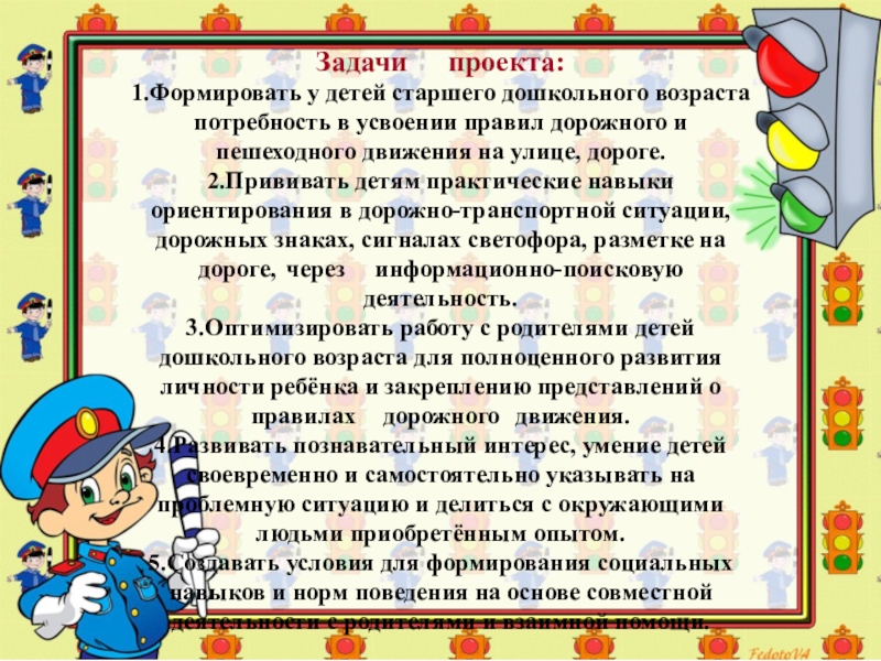 1.Формировать у детей старшего дошкольного возраста потребность в усвоении правил дорожного