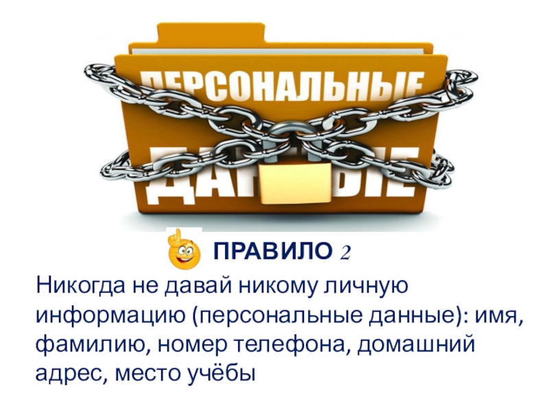 Никогда не давай никому личную информацию (персональные данные): имя, фамилию, номер телефона, домашний адрес, место учёбы