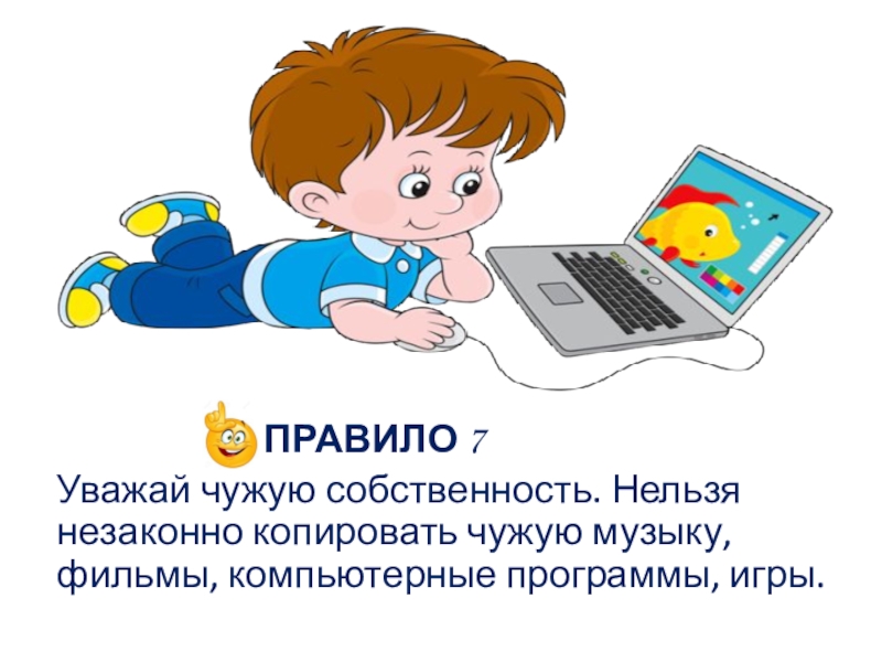 Уважай чужую собственность. Нельзя незаконно копировать чужую музыку, фильмы, компьютерные программы, игры.