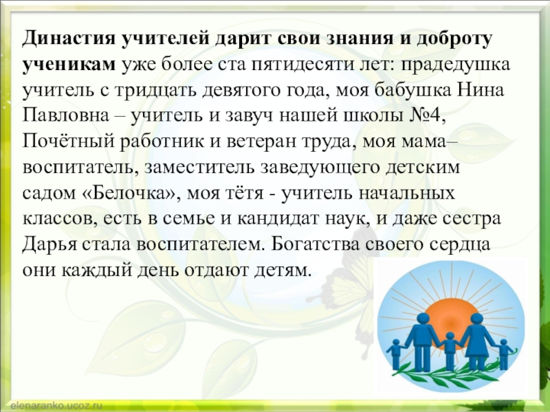 Это сайт презентаций, где можно хранить и обмениваться своими презентациями, докладами, проектами, шаблонами в формате PowerPoint с другими пользователями. Мы помогаем школьникам, студентам, учителям, преподавателям хранить и обмениваться учебными материалами.