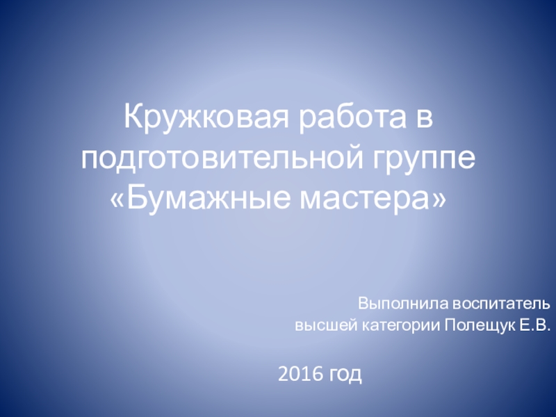 Слайд 1Кружковая работа в подготовительной группе «Бумажные мастера»