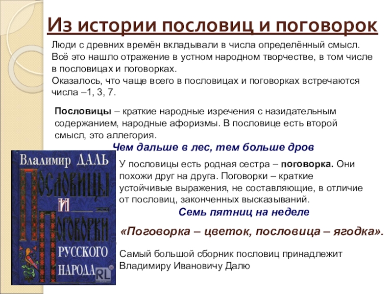 Самый большой сборник пословиц принадлежит Владимиру Ивановичу Далю