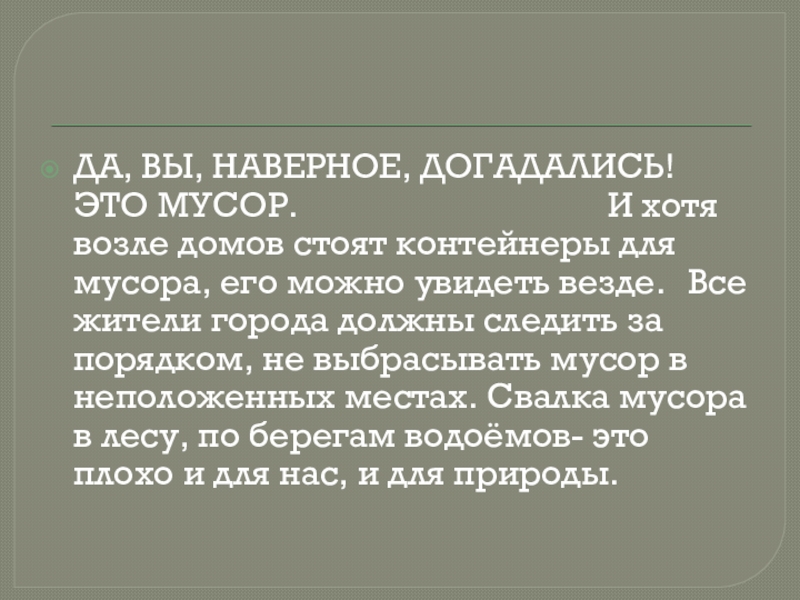 Это сайт презентаций, где можно хранить и обмениваться своими презентациями, докладами, проектами, шаблонами в формате PowerPoint с другими пользователями. Мы помогаем школьникам, студентам, учителям, преподавателям хранить и обмениваться учебными материалами.