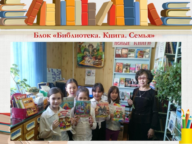 Слайд 27Блок «Библиотека. Книга. Семья»