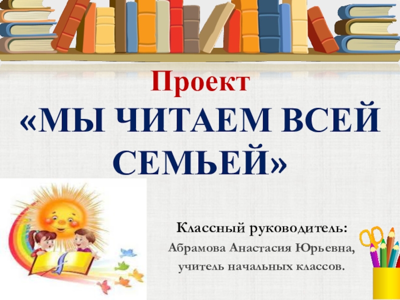 Проект «МЫ ЧИТАЕМ ВСЕЙ СЕМЬЕЙ»Классный руководитель:Абрамова Анастасия Юрьевна,учитель начальных классов.Prezentacii.com
