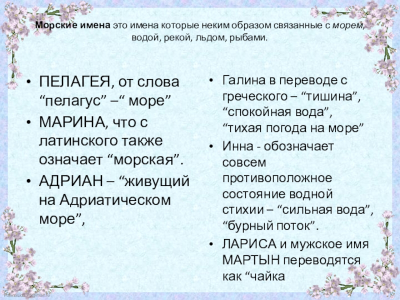 МАРИНА, что с латинского также означает “морская”.