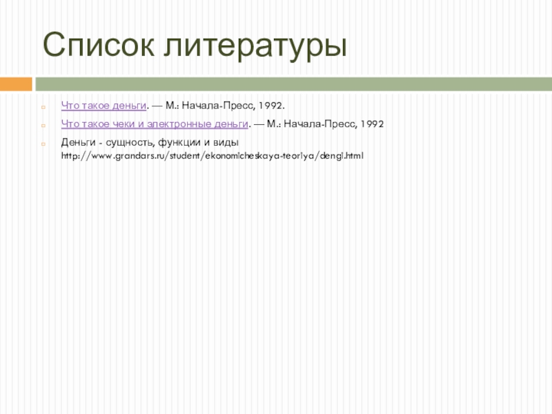 Деньги - сущность, функции и виды http://www.grandars.ru/student/ekonomicheskaya-teoriya/dengi.html