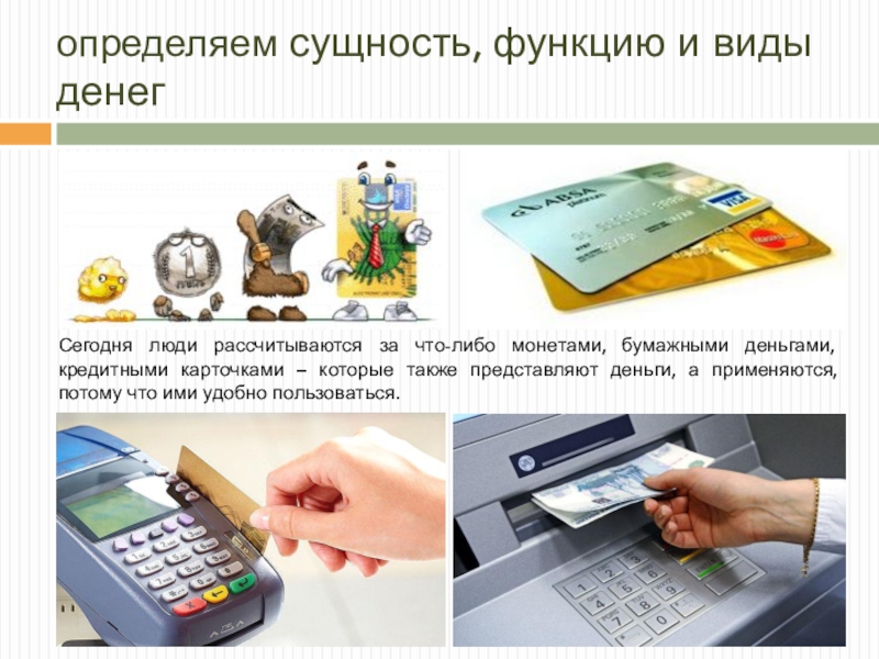 Слайд 7определяем сущность, функцию и виды денег