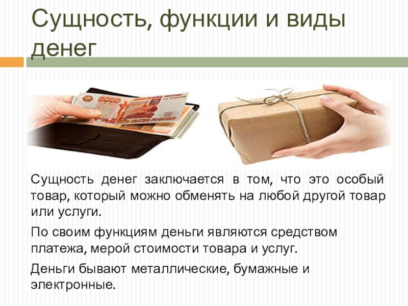 Слайд 5Сущность, функции и виды денег