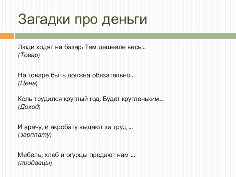 Слайд 10Загадки про деньги