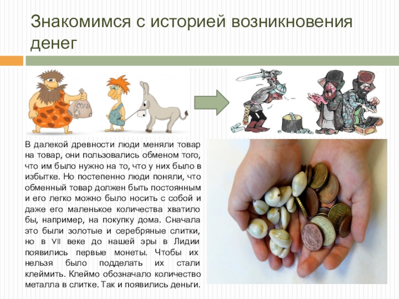 Слайд 6Знакомимся с историей возникновения денег