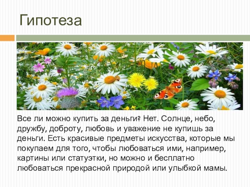 любовь и уважение не купишь за деньги. Есть красивые предметы искусства, которые мы покупаем для того, чтобы любоваться ими, например, картины или статуэтки, но можно и бесплатно любоваться прекрасной природой или улыбкой мамы.
