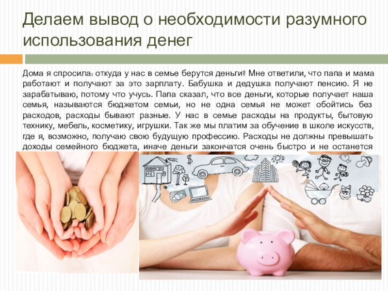 Слайд 9Делаем вывод о необходимости разумного использования денег